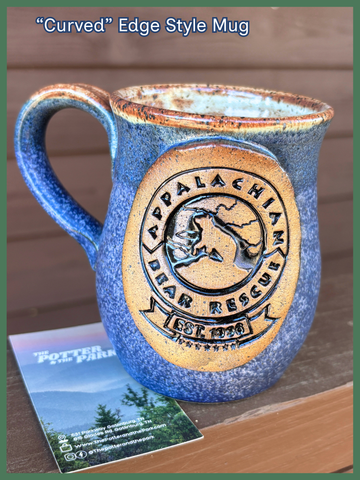 2) "Curved" Edge is a more slender mug that is taller than the straight edge mug. It has a slight taper to the top.