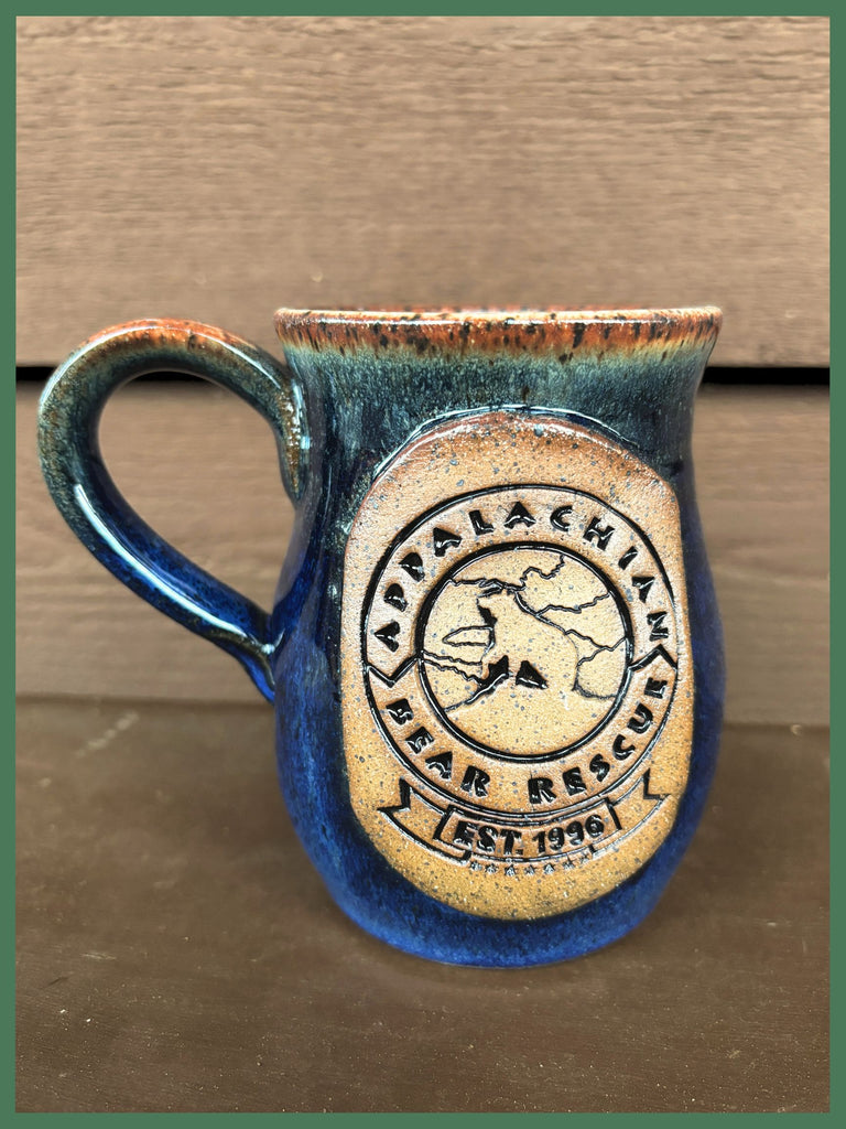 Grab a hot cup of your favorite drink in this hand-thrown ABR mug by local artist Potter in the Park in Gatlinburg. Mug is glazed blue and each one is unique in its own way due to its hand made nature.