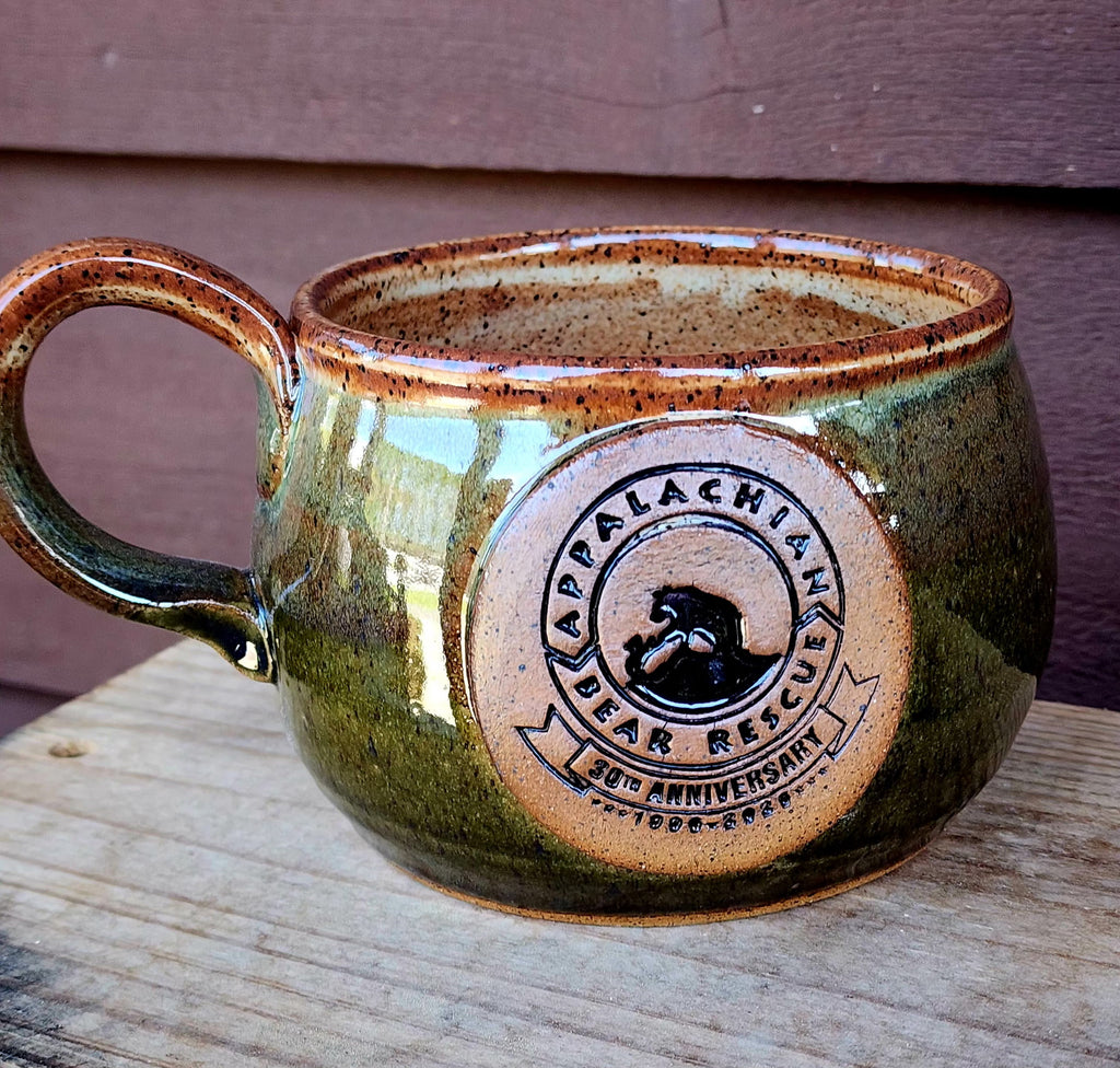 Enjoy your soup, cereal or ice cream in a handmade pottery soup mug with the ABR logo. Local Gatlinburg artist Tommy Bullen created the beautiful soup mugs. These mugs feature a "muted" blue glaze and match our blue coffee mugs! Because they are handmade, each one is unique, each one with slight variation.